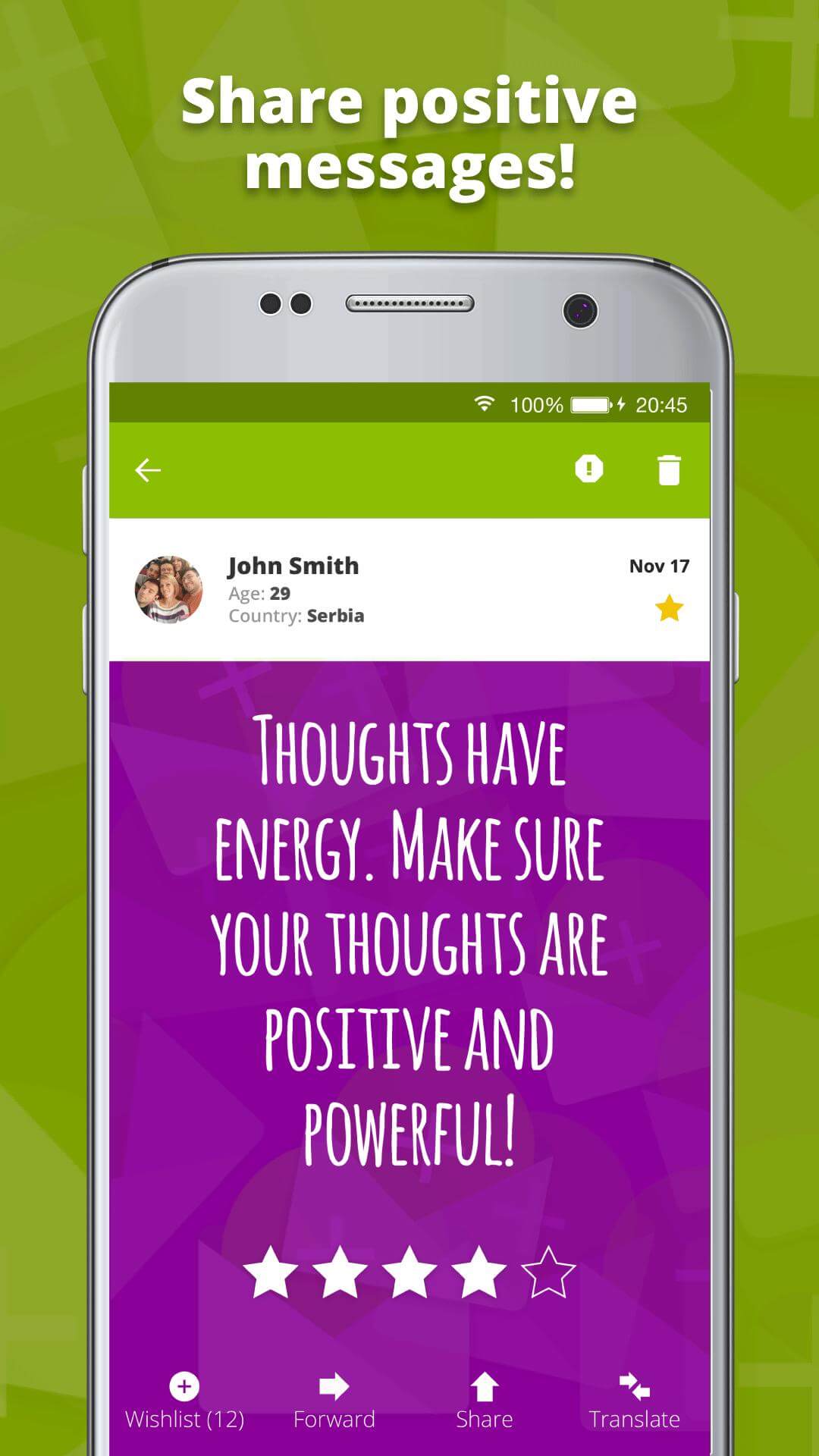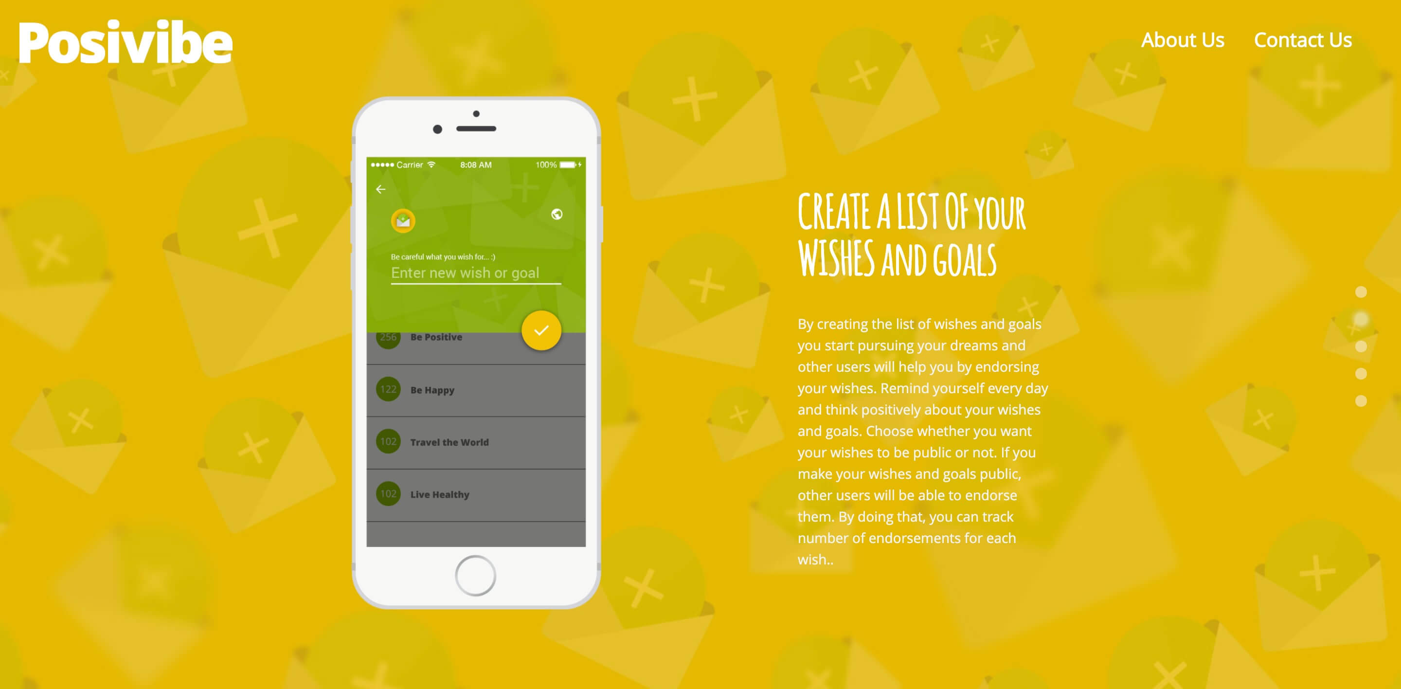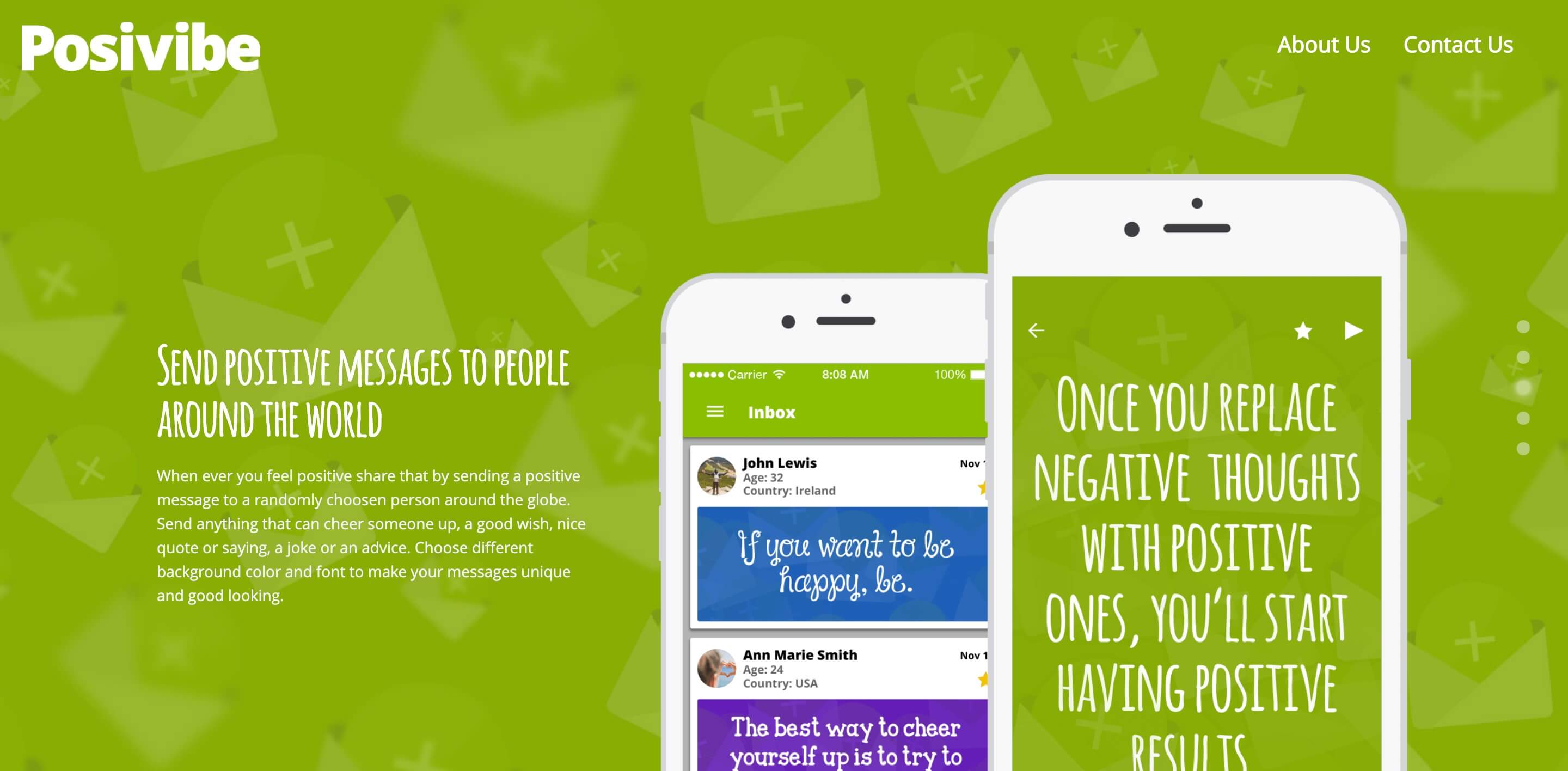 Posivibe is the only app with the purpose of spreading positive energy worldwide, an app where the color of the skin, religious affiliations, physical appearance, sex, and age is not a barrier for people to be each other's support and to send each other positive energy.