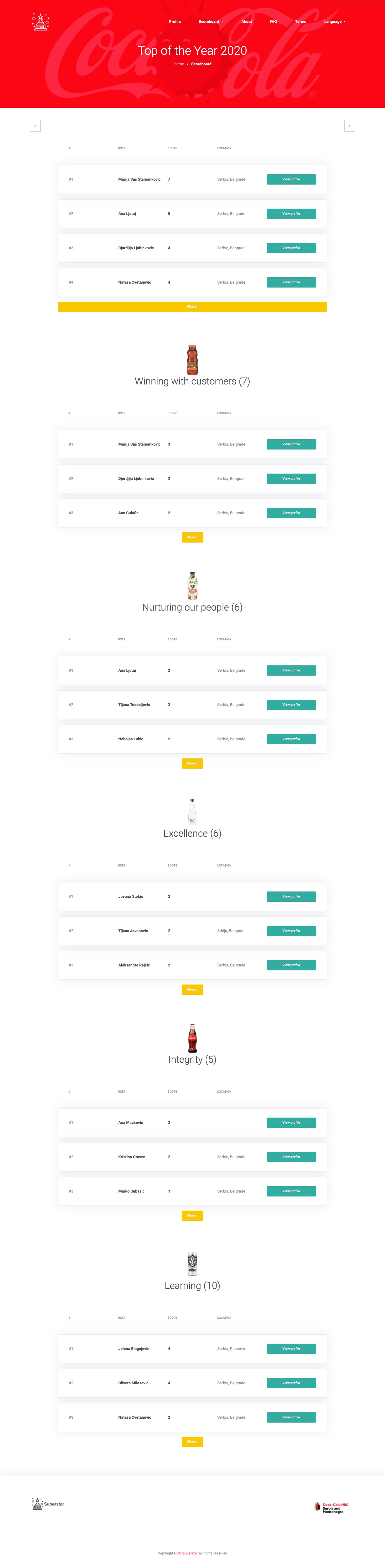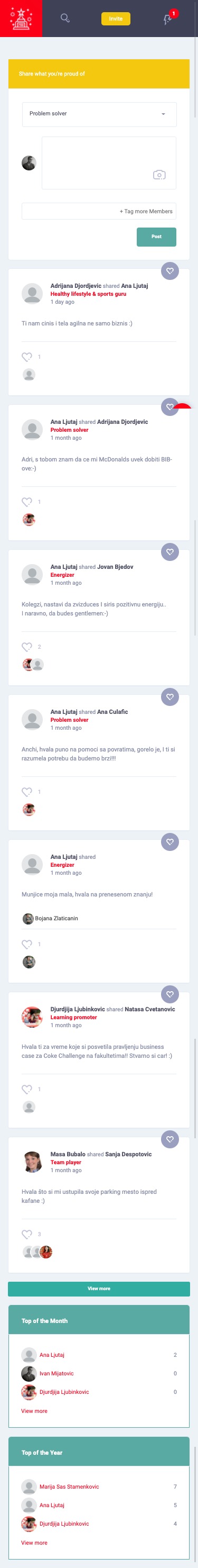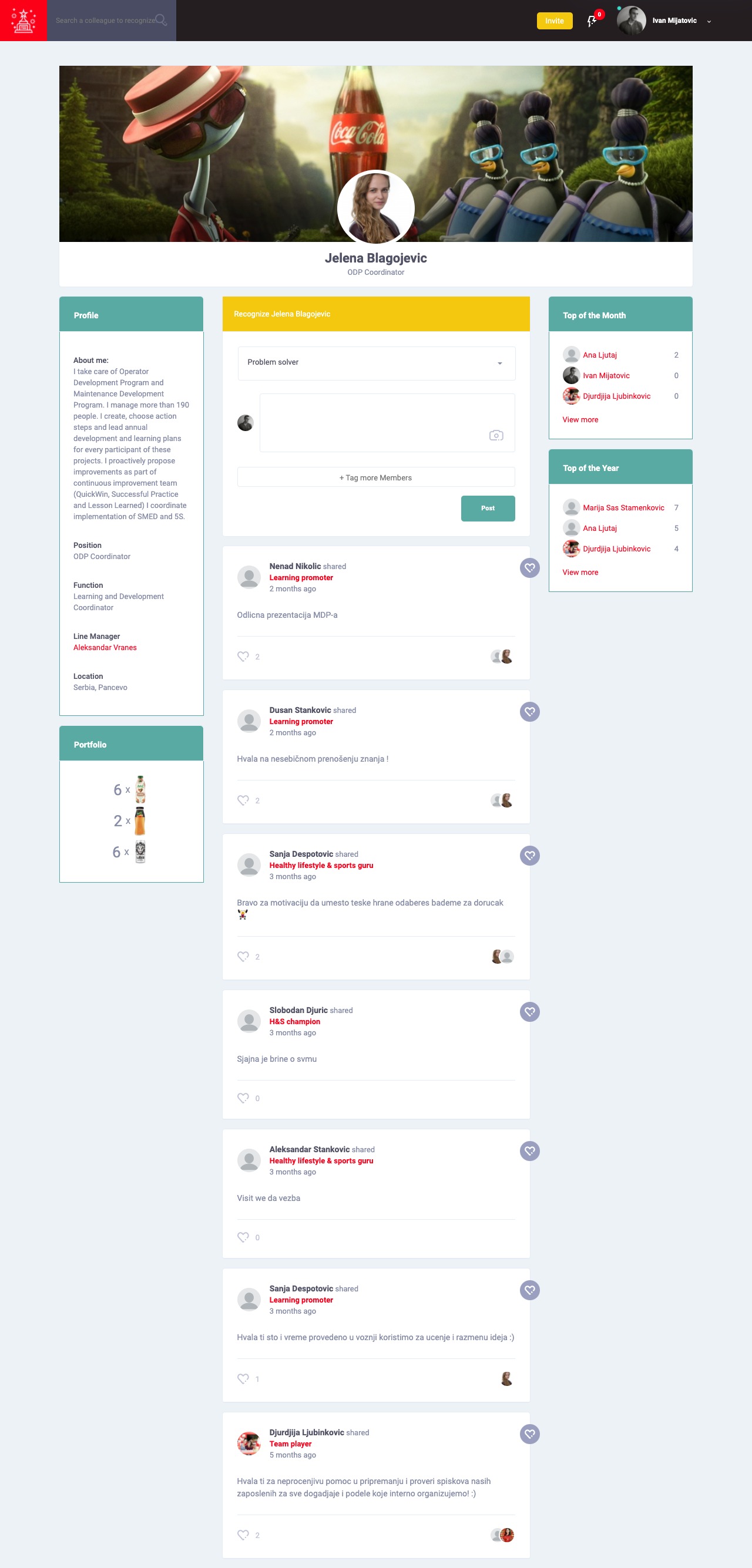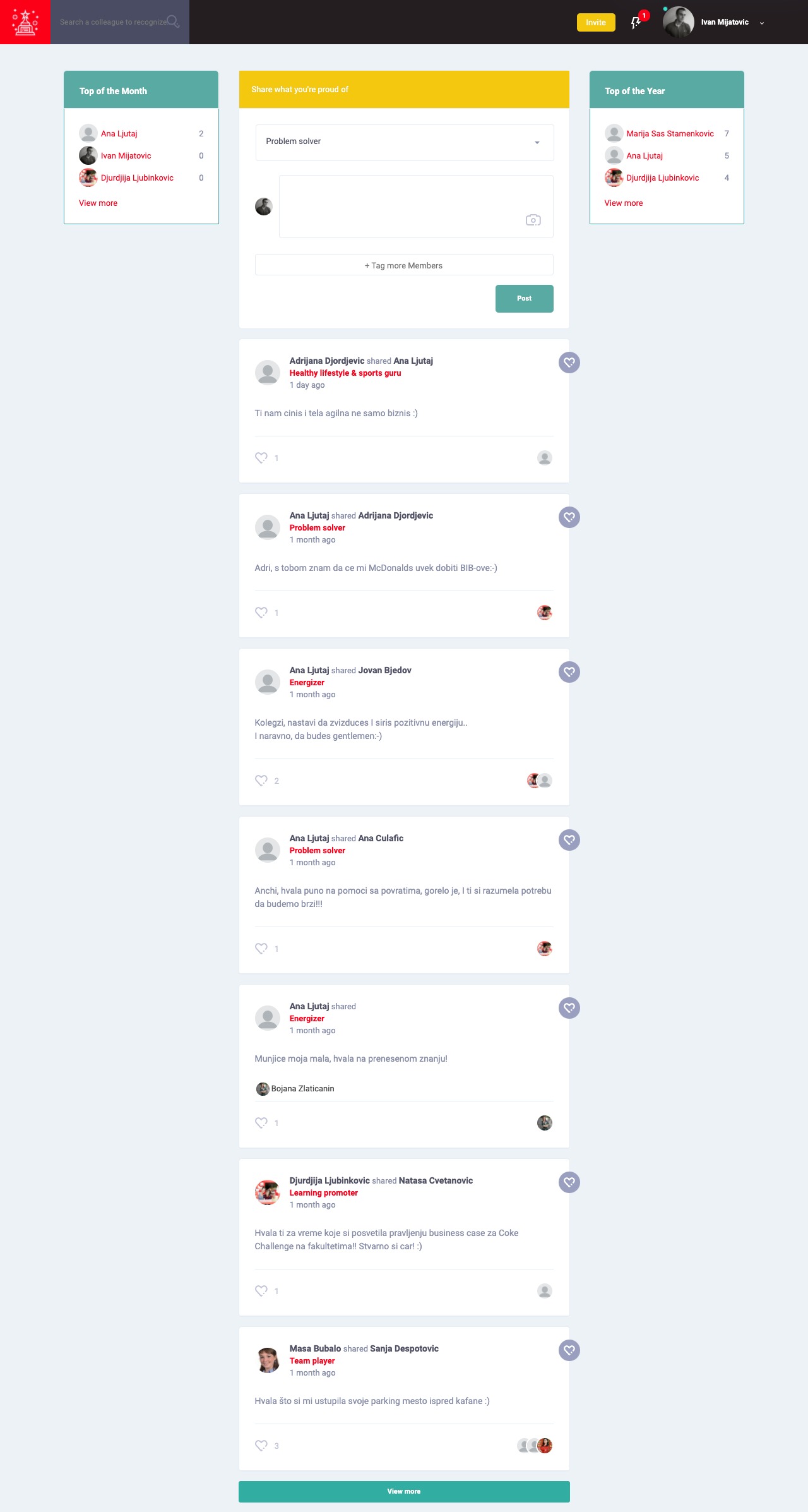Online gamification platform for internal recognition of Coca-Cola Hellenic employees.